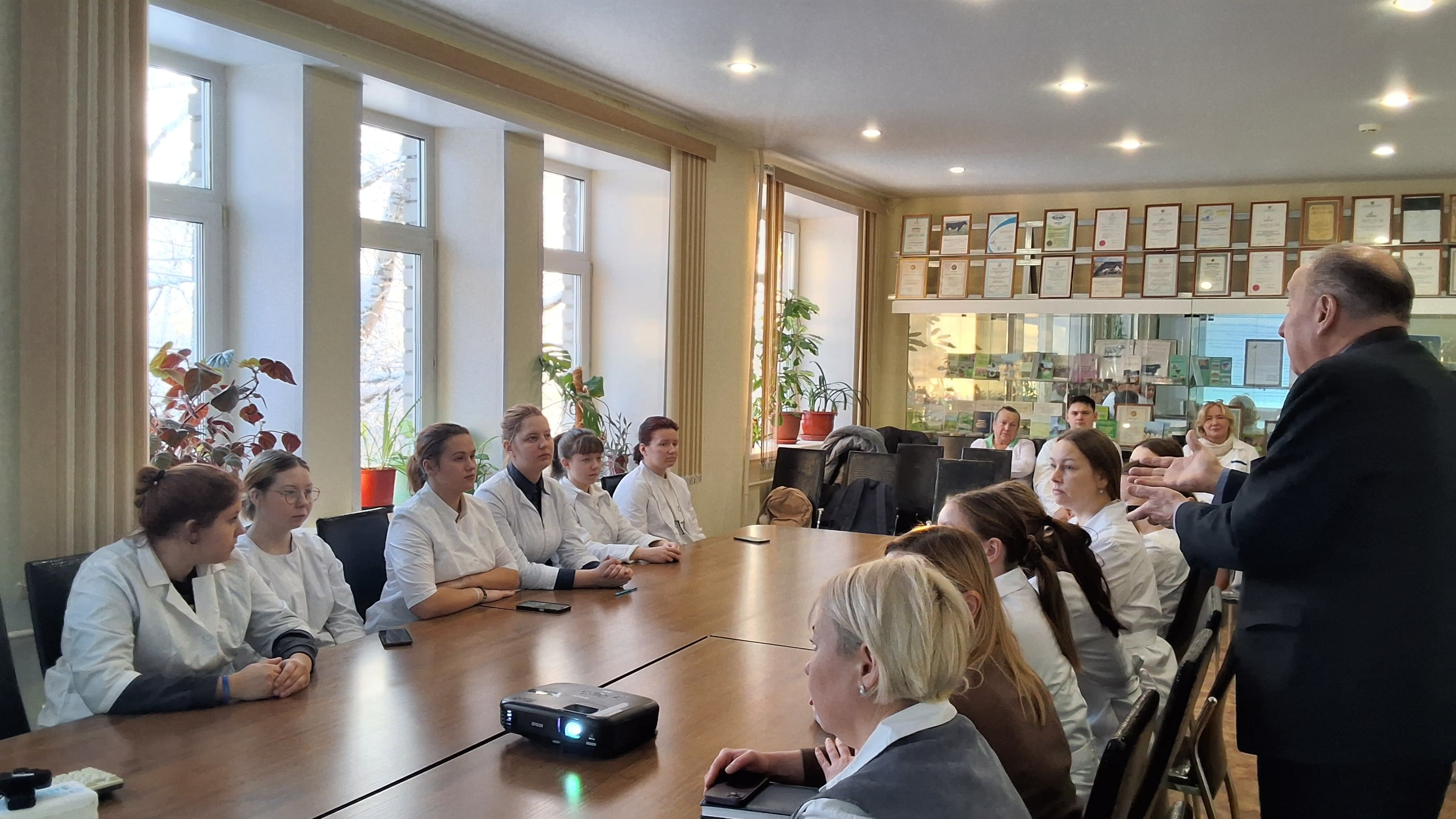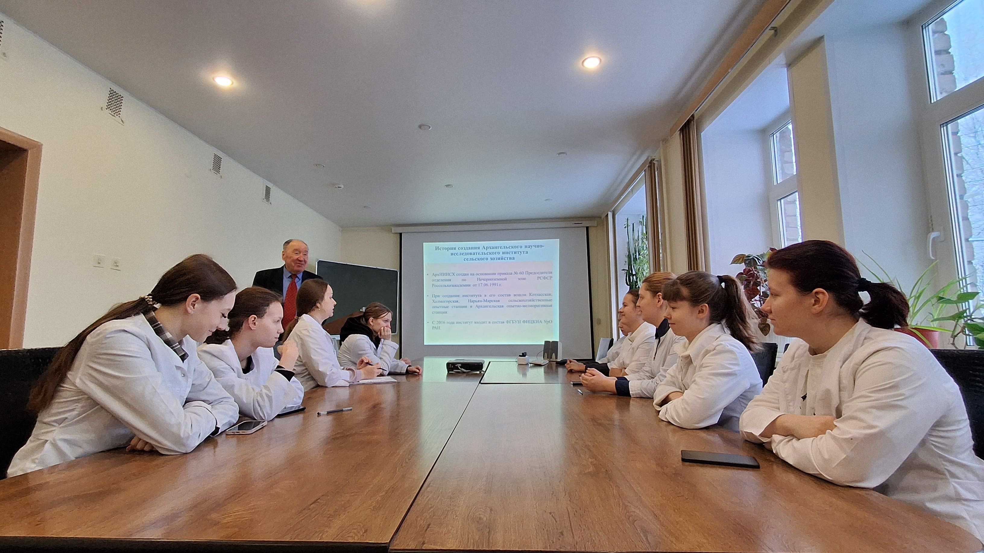 На встрече учёные рассказали будущим зоотехникам о современном научно-техническом обеспечении регионального АПК, связях производства и науки. Общую презентацию Архангельского НИИ сельского хозяйства провёл его директор Валентин Викторович Гинтов, сообщив об истории создания, структуре, функционале и достижениях института.